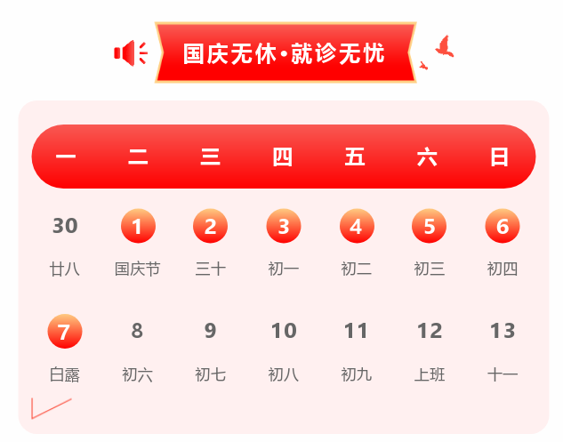 节日期间,各专科、专家门诊,疫苗接种门诊,医技科室正常开诊,急诊24小时开放,绿色通道畅通无阻,悉心守护群众健康,……让平时忙于工作的您能够利用节假日,享受优质、专业的三级综合医院医疗服务,请患者朋友们合理安排就诊时间。
