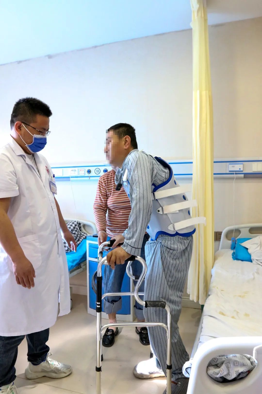 当患者在医生的陪同下,迈出术后第一个无需搀扶的十步时,这是他二十余年来,第一次以直立的身姿,与世界的平视。 这个曾因脊柱近乎180度弯曲而被迫"面朝黄土"的男人,此刻正小心地感受着每一块椎骨舒展的微痛与雀跃。