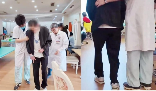 令人欣喜的是,在崔主任团队的坚持下,患者终于突破了第一个难关:肌张力显著下降,关节挛缩得到改善,曾经僵硬的肢体逐渐“松绑”。如今,他已能在辅助下重新开始行走。尽管步伐尚不稳,但这一步的迈出,不仅是身体的解放,更是对未来的信心。
