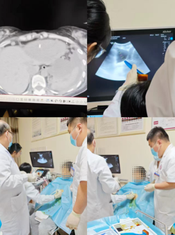 决心既定,行动迅捷。在葛新华主任的整体协调下,肿瘤一科范宗华副主任与超声科潘秀丽主任强强联合,展开了密切的合作。超声科的精确定位是手术安全的前提,潘秀丽主任凭借精湛的超声技术,为穿刺路径提供了最清晰的“导航图”;范宗华副主任则凭借丰富的临床经验和沉稳的操作技巧,在超声实时引导下,精准地将穿刺针送入心包腔。