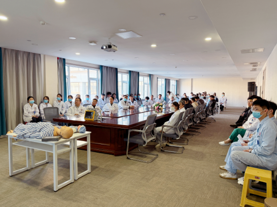 理论讲解之后,现场开展了实操演示。崔院长手把手指导医护人员调整按压姿势、控制按压力度,确保每一个动作都精准无误、标准规范,及时纠正操作误区。他风趣幽默的语言和精湛扎实的医疗经验,赢得了参培人员的一致好评。